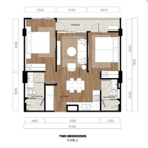 A spacious and well-designed 2-bedroom unit at Tropika, offering a comfortable layout suitable for families or shared living. The unit is thoughtfully planned to provide both privacy and functional living space.