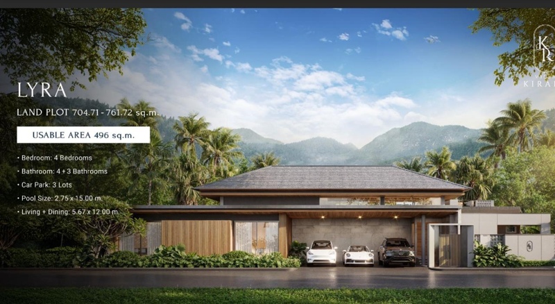 Lyra Villas are impressive residences designed for those who appreciate space and premium quality. With a usable area of 496 sq.m. set on land plots ranging from 704.71 to 761.72 sq.m., each villa offers 4 bedrooms, 4+3 bathrooms, a 5.67 × 12.00 m living and dining area, parking for three cars, and a private pool measuring 2.75 × 15.00 m.