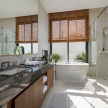 Natural tones, premium finishes, and floor-to-ceiling windows fill the home with light and warmth, creating a true tropical retreat.