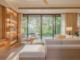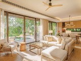 Villa Vana 3 in the Tri Vananda project is a single-story residence with three bedrooms and a total built-up area of 404 square meters. Designed with a focus on harmony with nature, the villa features spacious open-plan interiors, natural materials, and large panoramic windows that provide abundant natural light and seamless indoor-outdoor living. The layout includes a spacious living and dining area, a fully equipped kitchen, and three ensuite bedrooms offering privacy and comfort. Surrounded by lush greenery, the villa sits on a generous land plot, providing ample outdoor space for relaxation, including a private swimming pool and landscaped garden. The design reflects the project's wellness-oriented philosophy, integrating tranquility, sustainability, and connection to the natural environment.